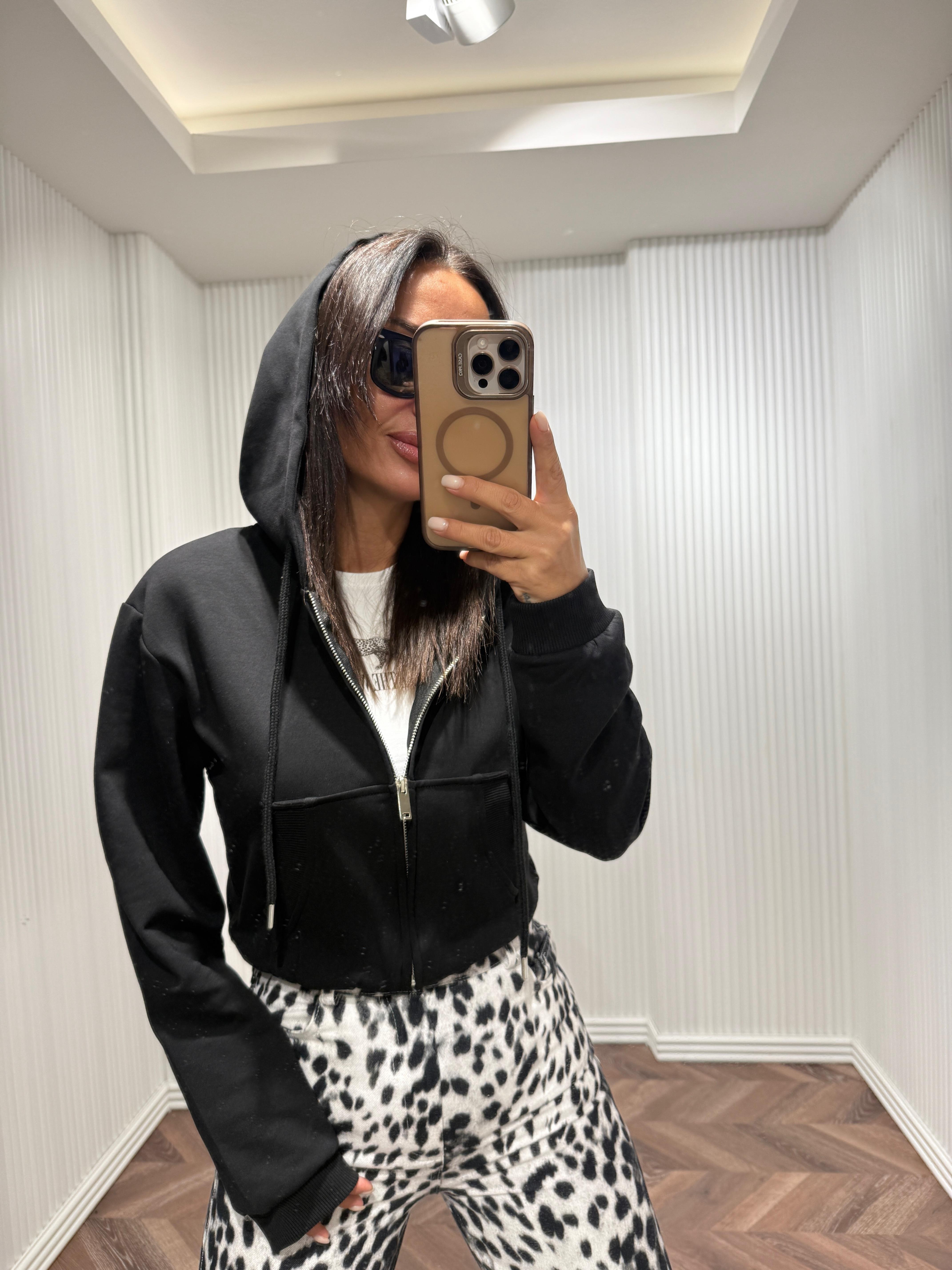 Model Üzerinde s beden denenmiştir. Fermuarlı Kapüşonlu.