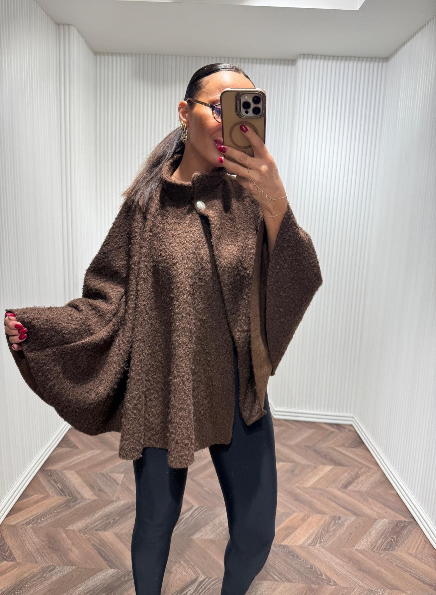 FLORİDA Kahverengi Kemerli Panço Ceket No Sıfır 8