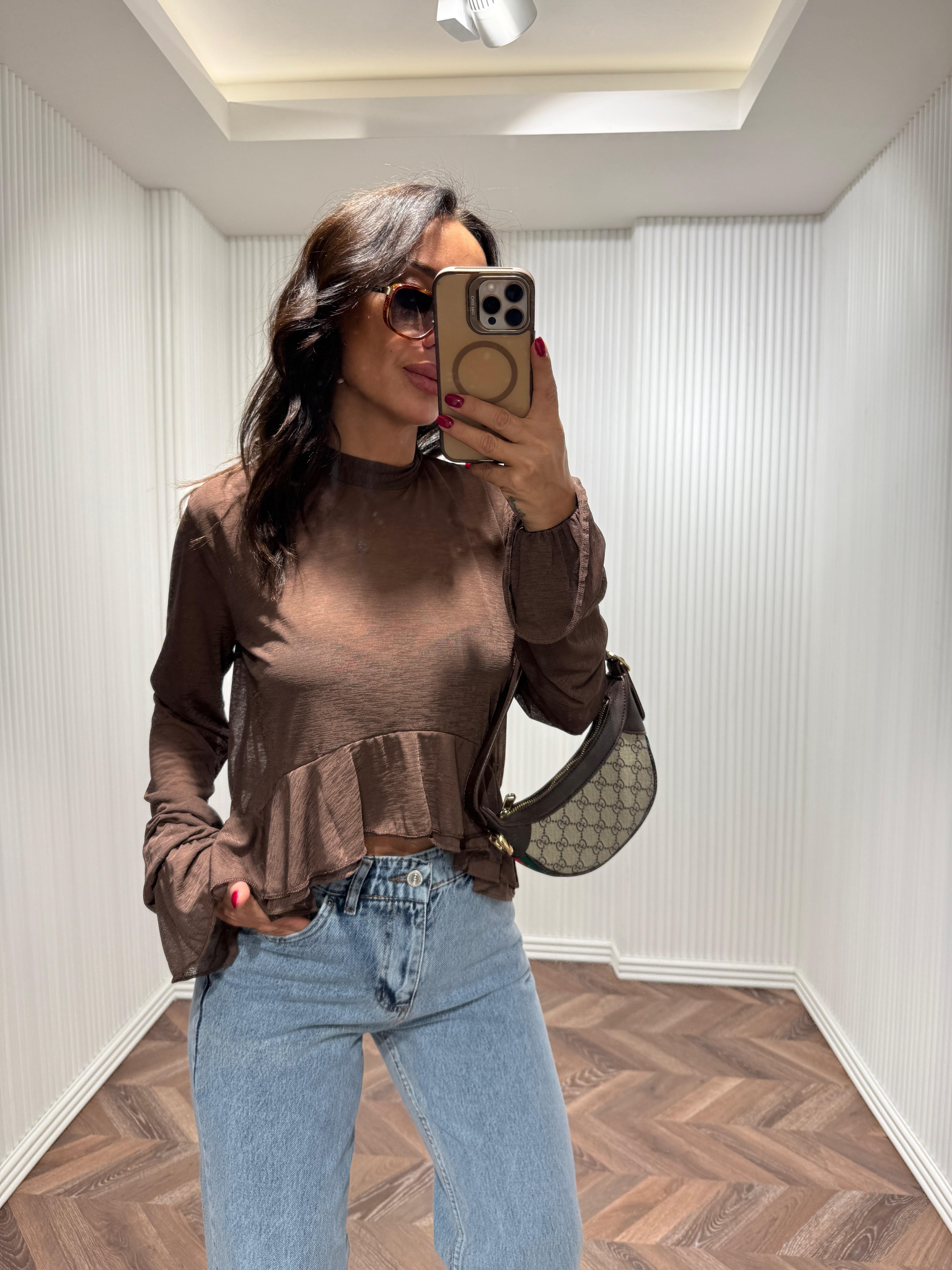 FRİLLY Kahve Fırfırlı Transparan Bluz