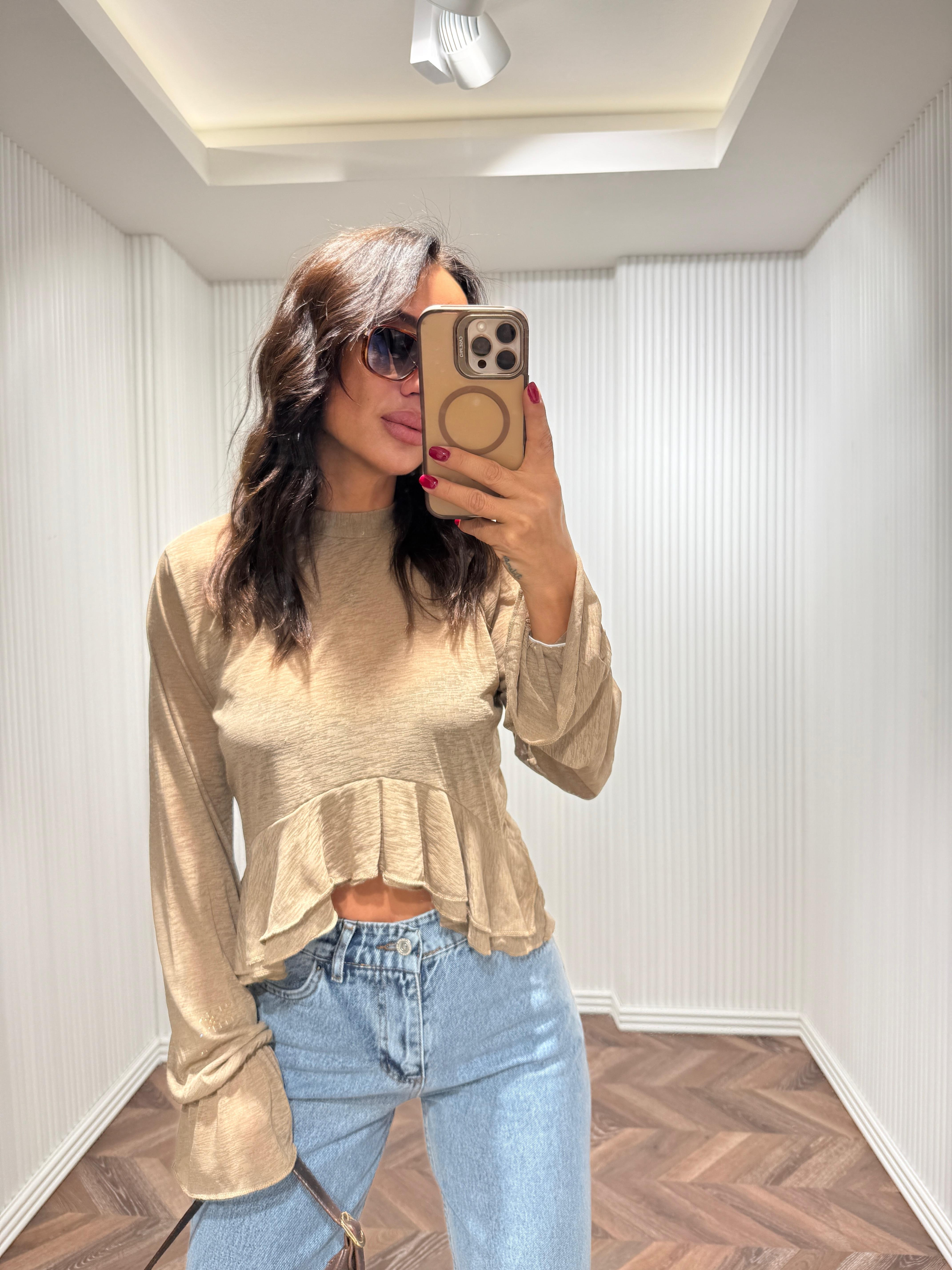 FRİLLY Vizon Fırfırlı Transparan Bluz  No Sıfır 8