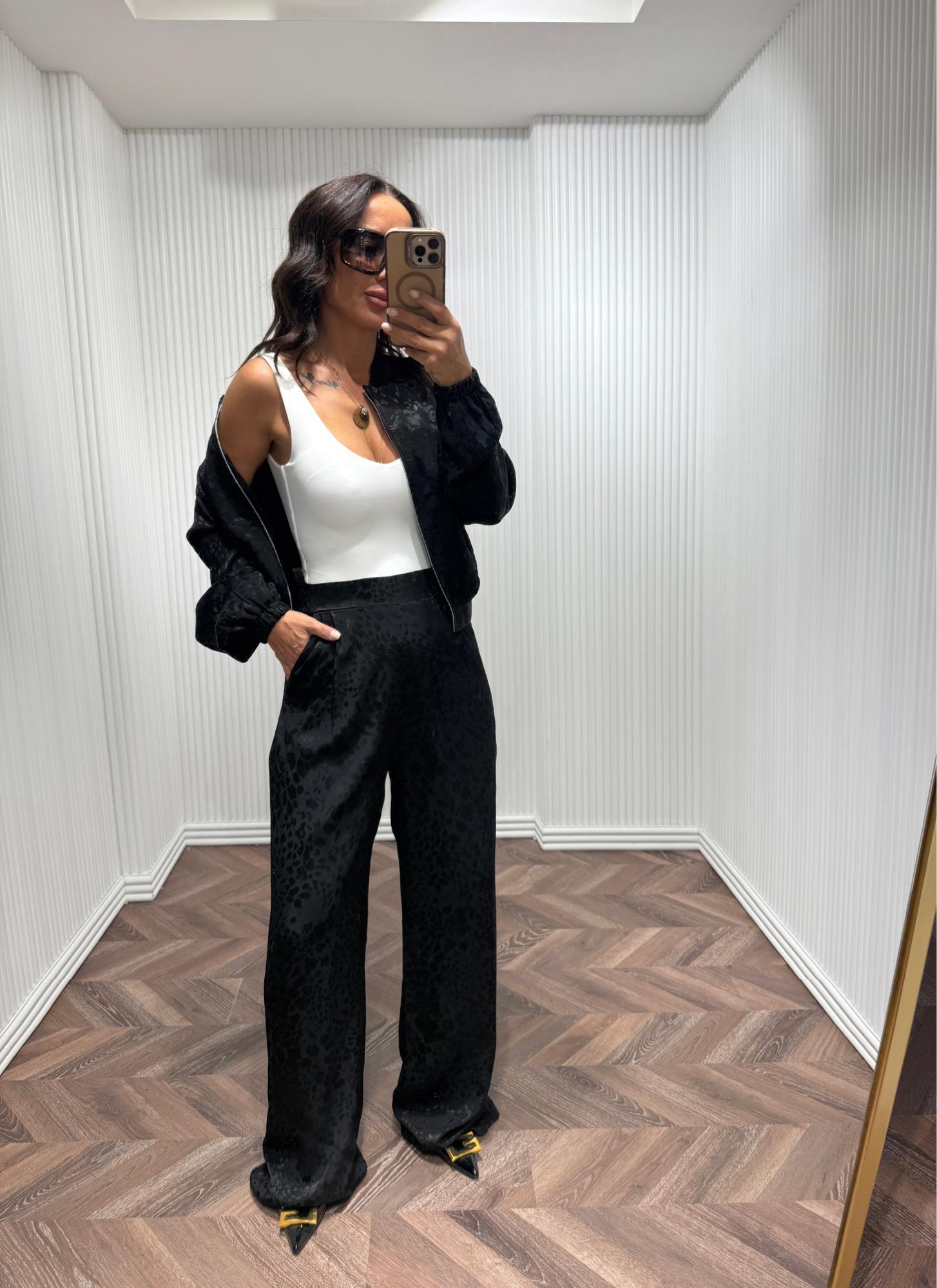HOLDEN Siyah Leopar Desenli Saten Pantalon