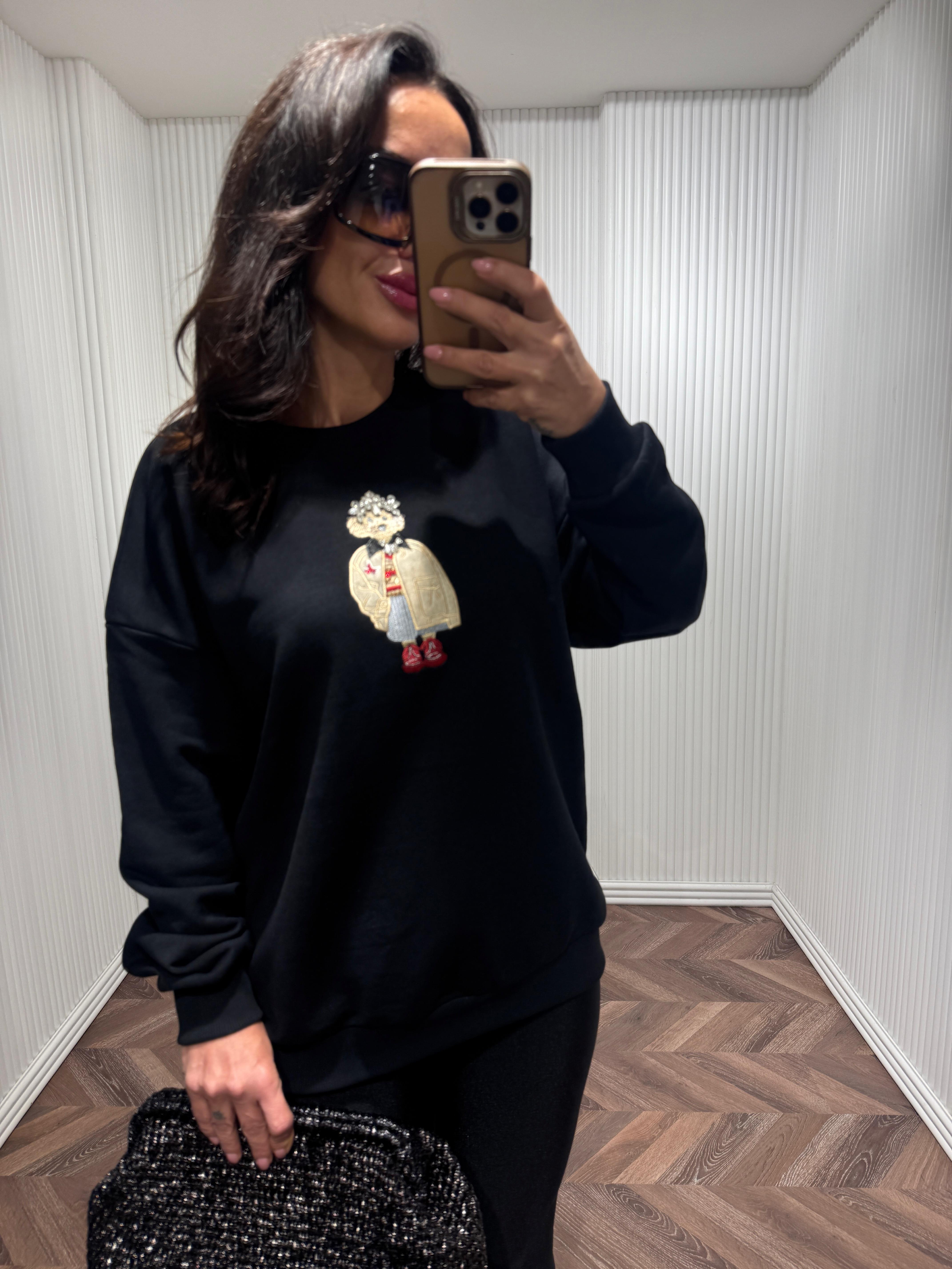 KLARA Orj Marka Ön Detaylı Siyah Sweatshirt