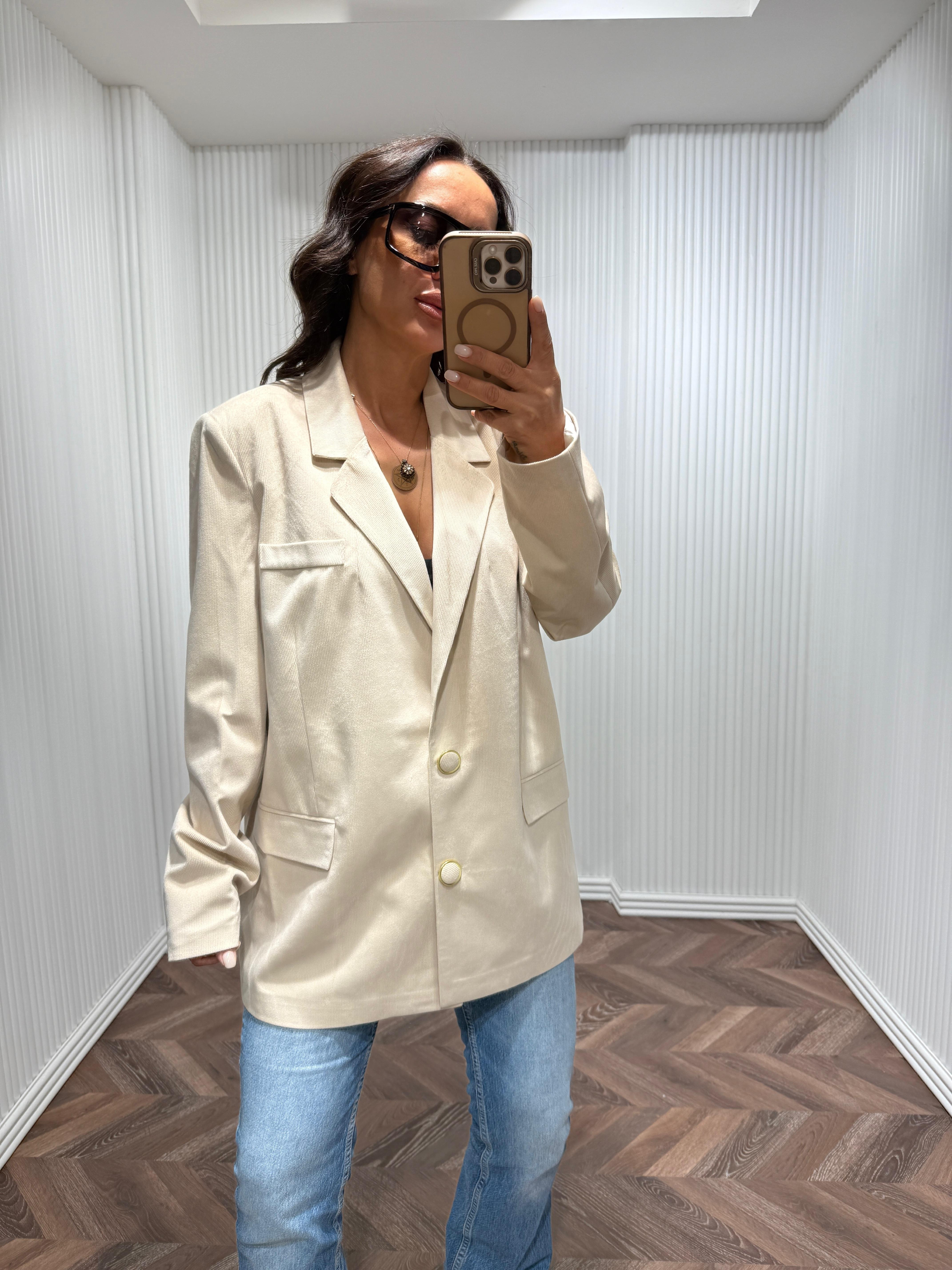 MİNELLA Krem Kadife Blazer Ceket