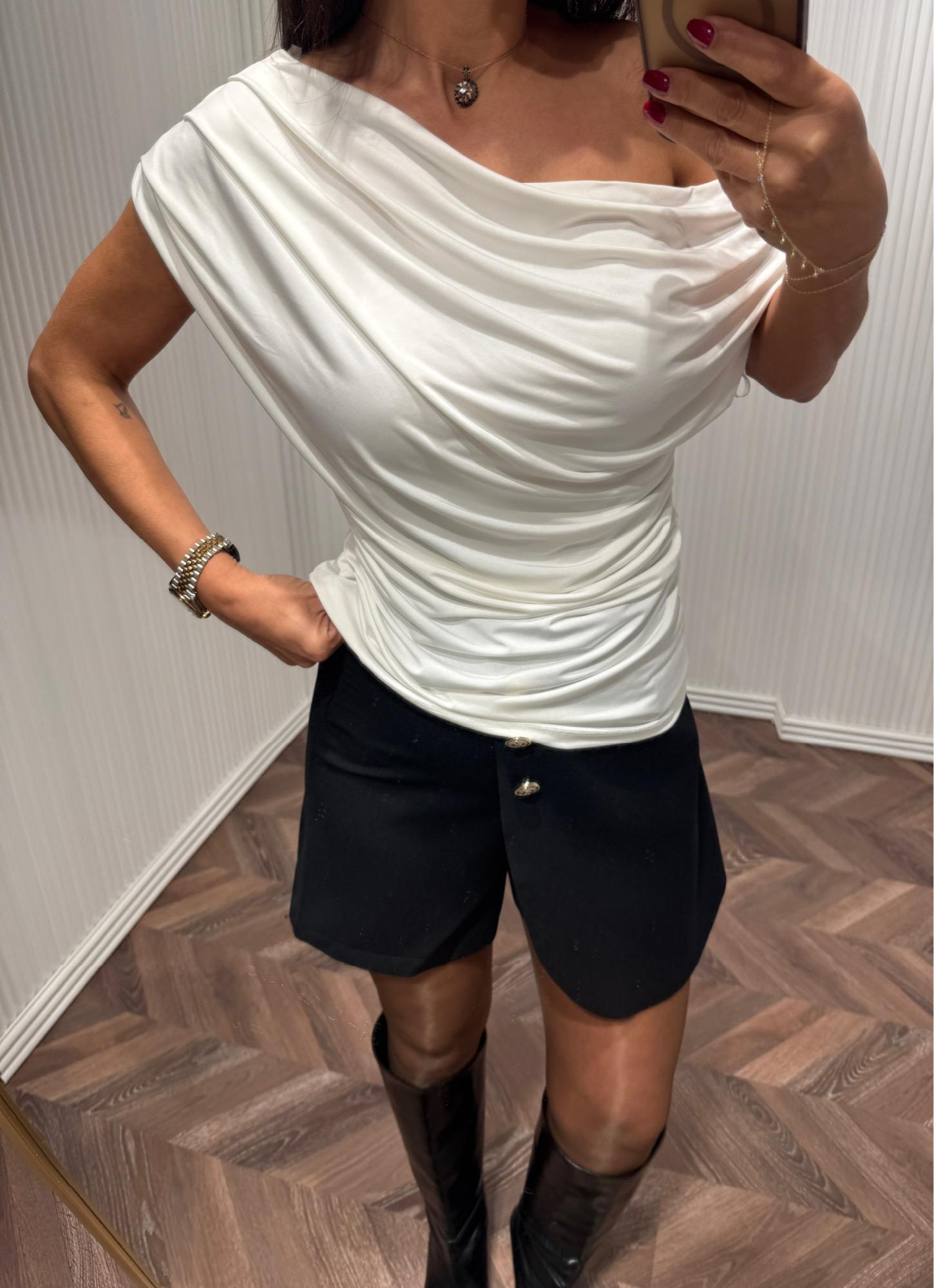 PLUS Beyaz Tek Omuzlu Yan Drapeli Bluz No Sıfır 8