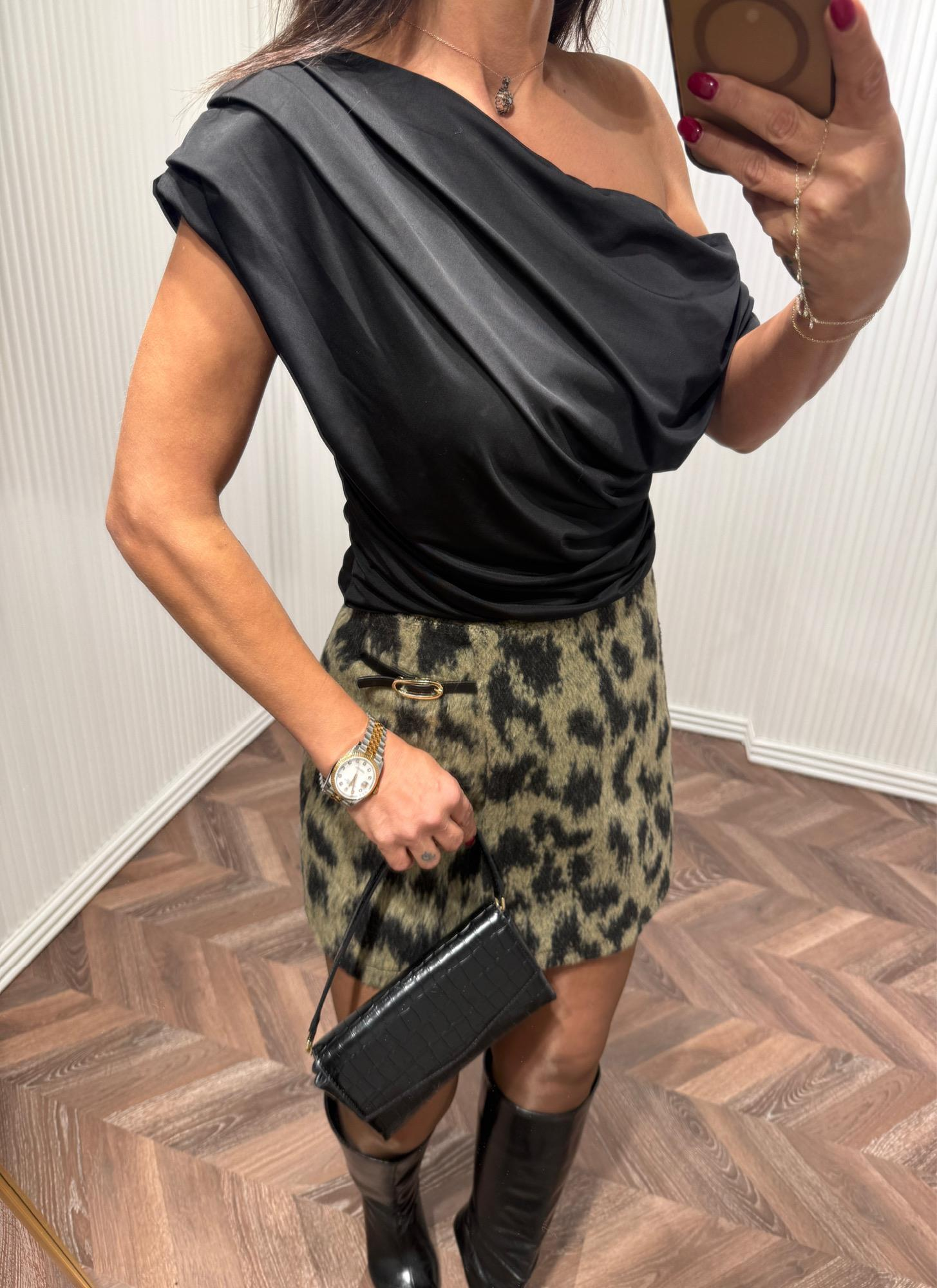 PLUS Siyah Tek Omuzlu Yan Drapeli Bluz No Sıfır 8