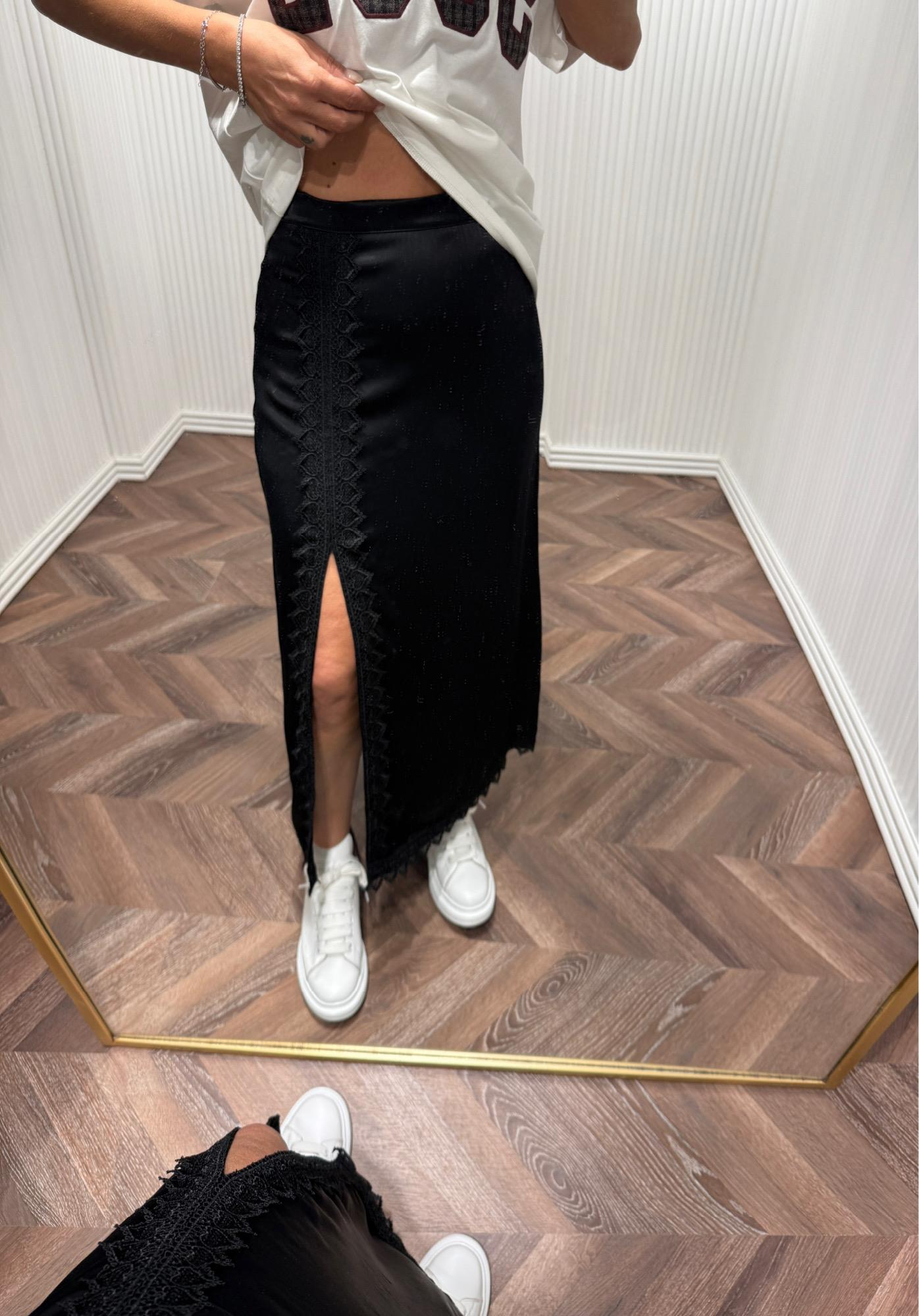 TED Fisto Yırtmaç Detaylı Siyah Saten Etek